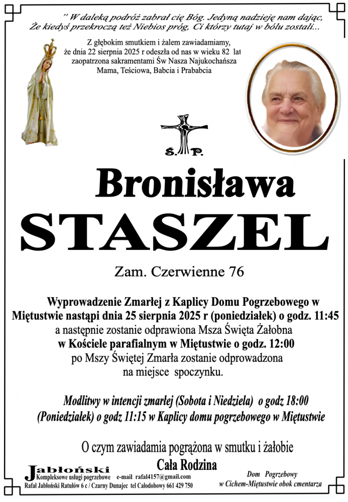 Bronisława Staszel - Nekrologi - podhale24.pl