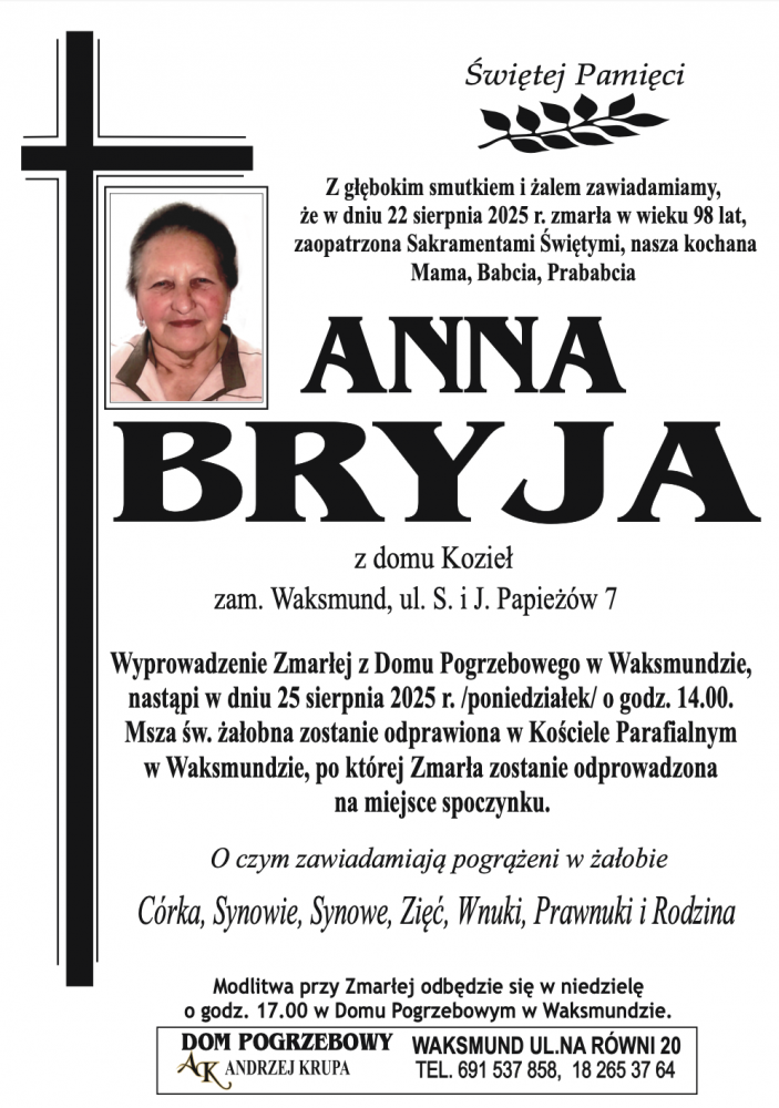 Anna Bryja - Nekrologi - podhale24.pl