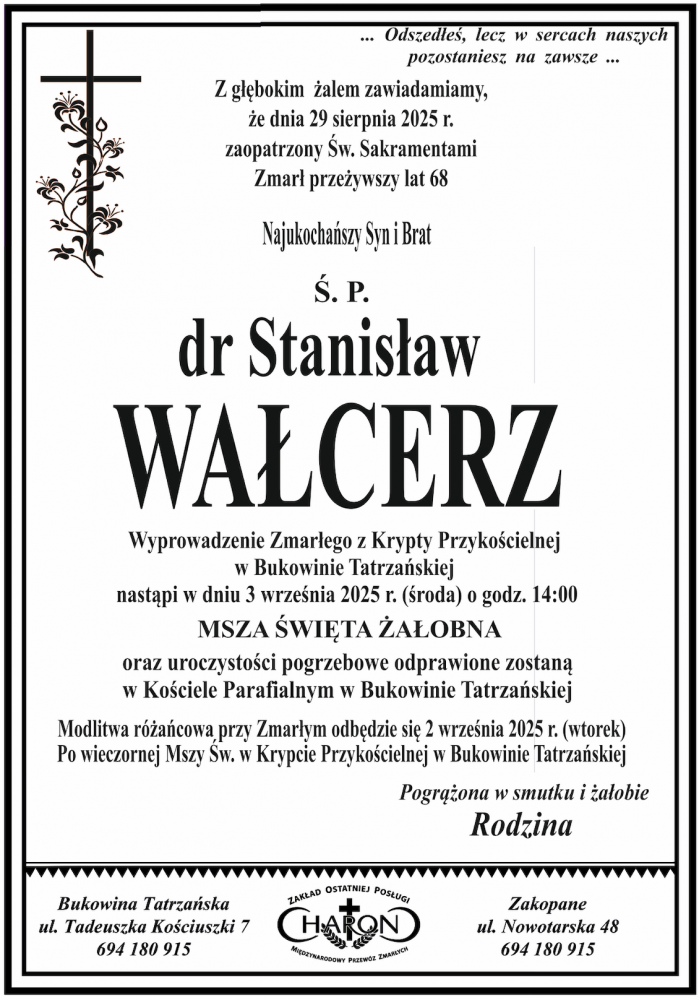 Stanisław Wałcerz - Nekrologi - podhale24.pl