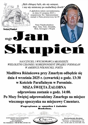 Podhale24.pl zastrzega sobie prawo do nie publikowania wspomnień, w szczególności tych nie związanych z profilem działu nekrologi, zawierających wulgaryzmy, wzywających do zachowań niezgodnych z prawem, obrażających osoby publiczne i prywatne, obrażających inne narodowości, rasy, religie itd, oraz te, bez możliwości telefonicznej lub mailowej weryfikacji ich autora.