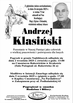 Podhale24.pl zastrzega sobie prawo do nie publikowania wspomnień, w szczególności tych nie związanych z profilem działu nekrologi, zawierających wulgaryzmy, wzywających do zachowań niezgodnych z prawem, obrażających osoby publiczne i prywatne, obrażających inne narodowości, rasy, religie itd, oraz te, bez możliwości telefonicznej lub mailowej weryfikacji ich autora.