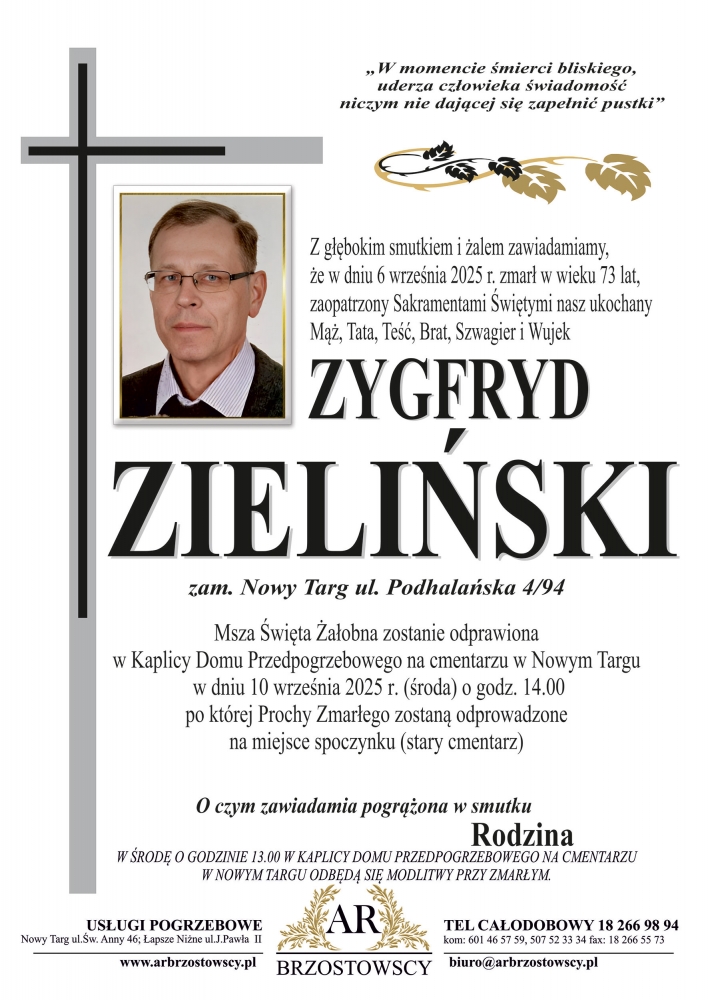 Zygfryd Zieliński - Nekrologi - podhale24.pl