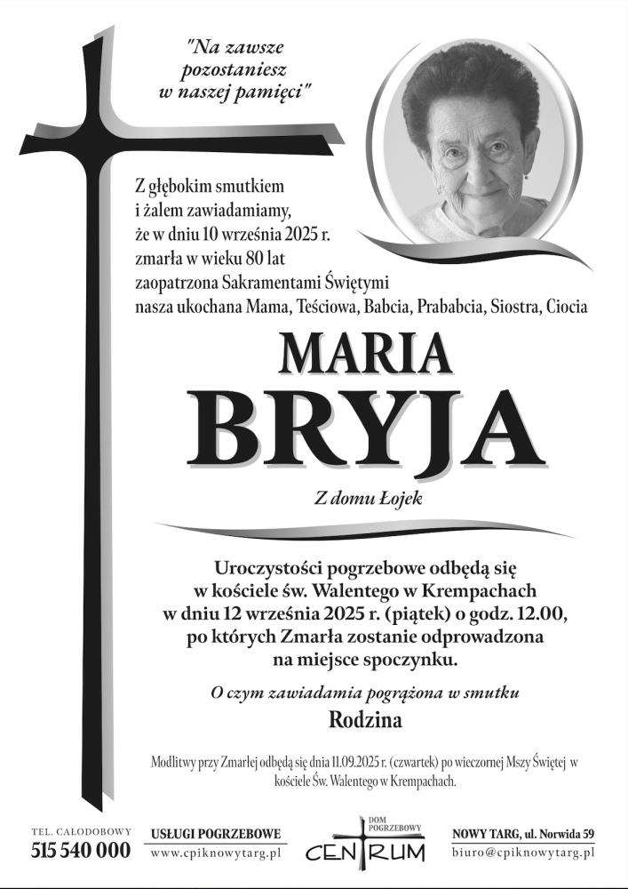 Maria Bryja - Nekrologi - podhale24.pl