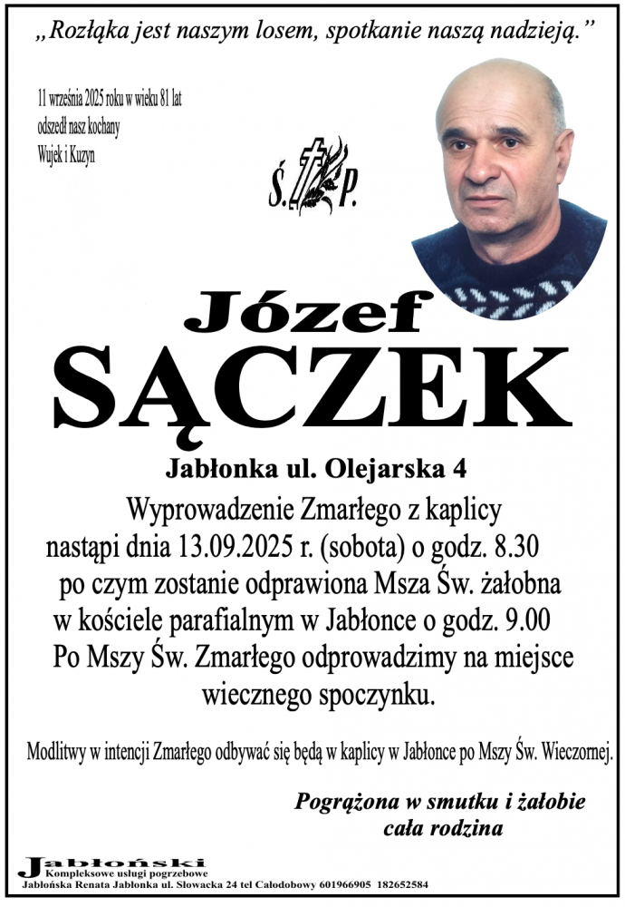 Józef Sączek - Nekrologi - podhale24.pl