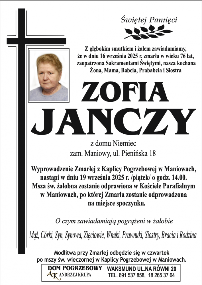 Podhale24.pl zastrzega sobie prawo do nie publikowania wspomnień, w szczególności tych nie związanych z profilem działu nekrologi, zawierających wulgaryzmy, wzywających do zachowań niezgodnych z prawem, obrażających osoby publiczne i prywatne, obrażających inne narodowości, rasy, religie itd, oraz te, bez możliwości telefonicznej lub mailowej weryfikacji ich autora.