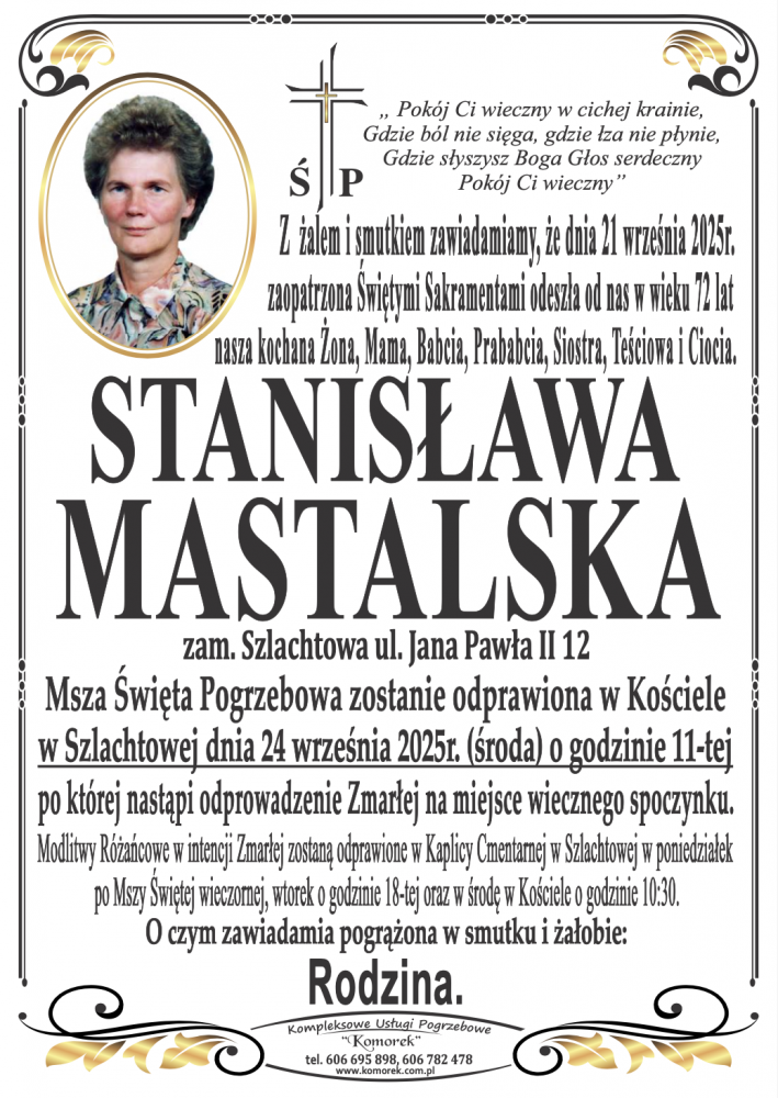 Stanisława Mastalska - Nekrologi - podhale24.pl