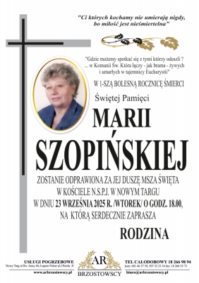 Podhale24.pl zastrzega sobie prawo do nie publikowania wspomnień, w szczególności tych nie związanych z profilem działu nekrologi, zawierających wulgaryzmy, wzywających do zachowań niezgodnych z prawem, obrażających osoby publiczne i prywatne, obrażających inne narodowości, rasy, religie itd, oraz te, bez możliwości telefonicznej lub mailowej weryfikacji ich autora.