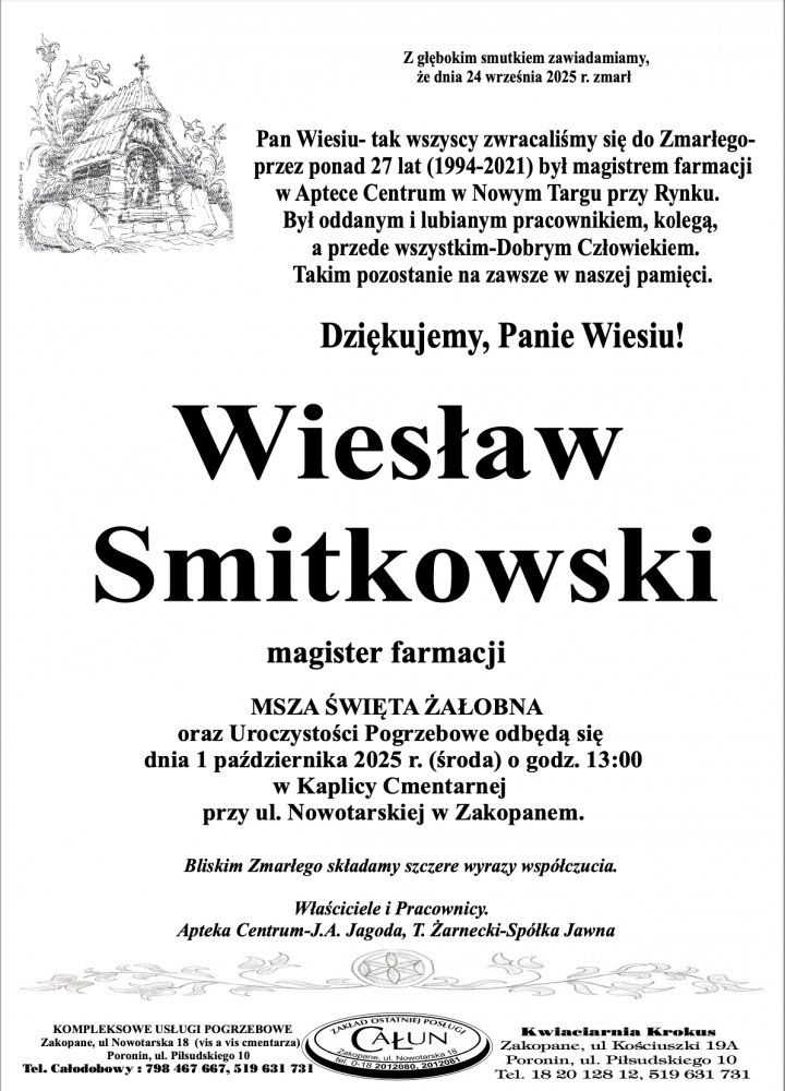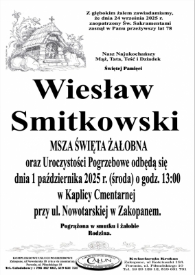 Wiesław Smitkowski - Nekrologi - podhale24.pl