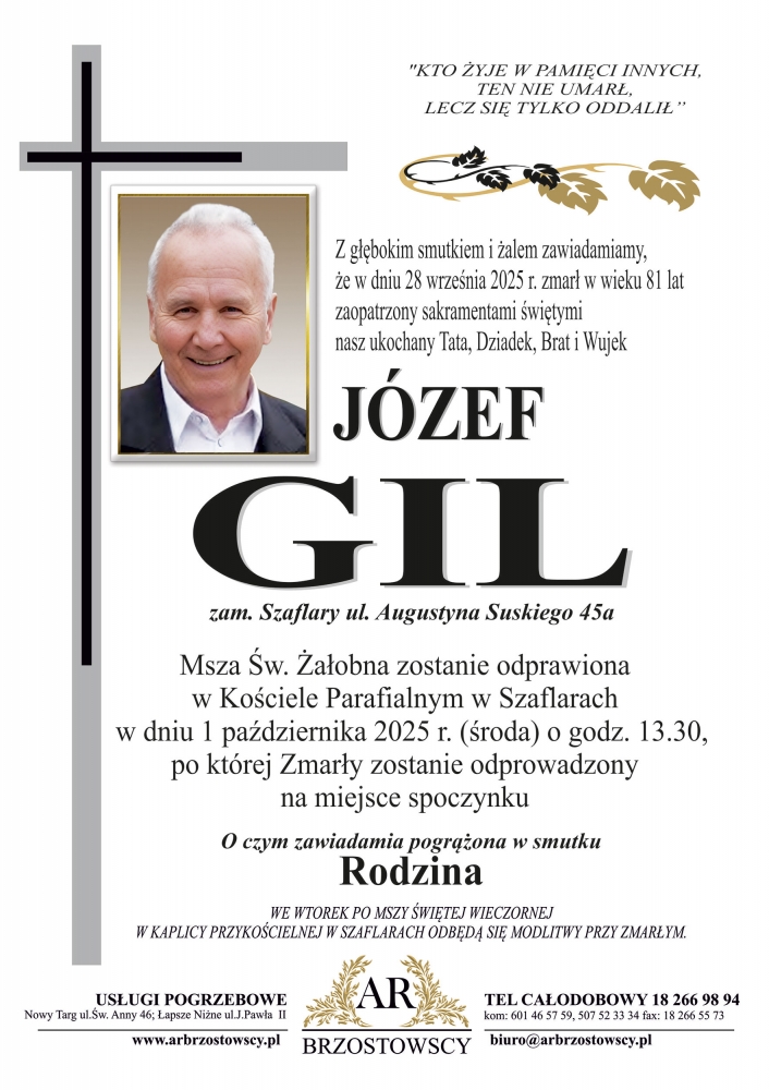 Podhale24.pl zastrzega sobie prawo do nie publikowania wspomnień, w szczególności tych nie związanych z profilem działu nekrologi, zawierających wulgaryzmy, wzywających do zachowań niezgodnych z prawem, obrażających osoby publiczne i prywatne, obrażających inne narodowości, rasy, religie itd, oraz te, bez możliwości telefonicznej lub mailowej weryfikacji ich autora.