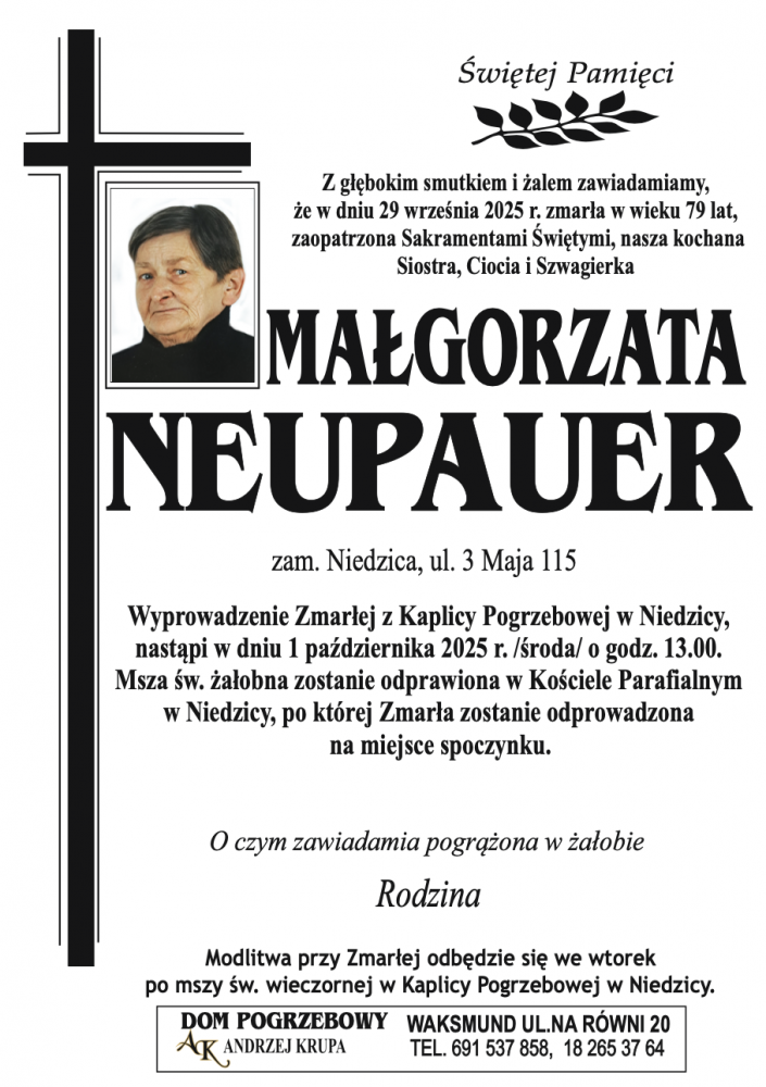 Małgorzata Neupauer - Nekrologi - podhale24.pl