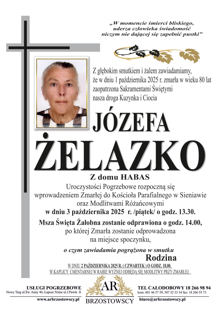 Józefa Żelazko - Nekrologi - podhale24.pl
