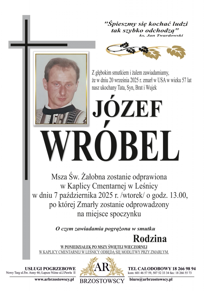 Podhale24.pl zastrzega sobie prawo do nie publikowania wspomnień, w szczególności tych nie związanych z profilem działu nekrologi, zawierających wulgaryzmy, wzywających do zachowań niezgodnych z prawem, obrażających osoby publiczne i prywatne, obrażających inne narodowości, rasy, religie itd, oraz te, bez możliwości telefonicznej lub mailowej weryfikacji ich autora.