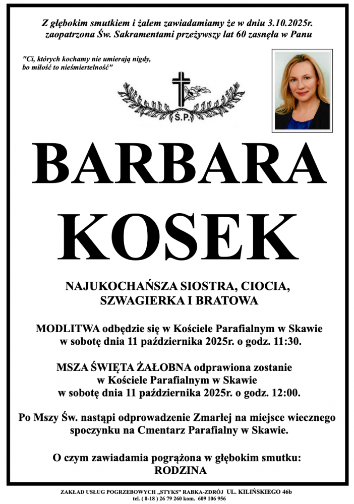 Barbara Kosek - Nekrologi - podhale24.pl