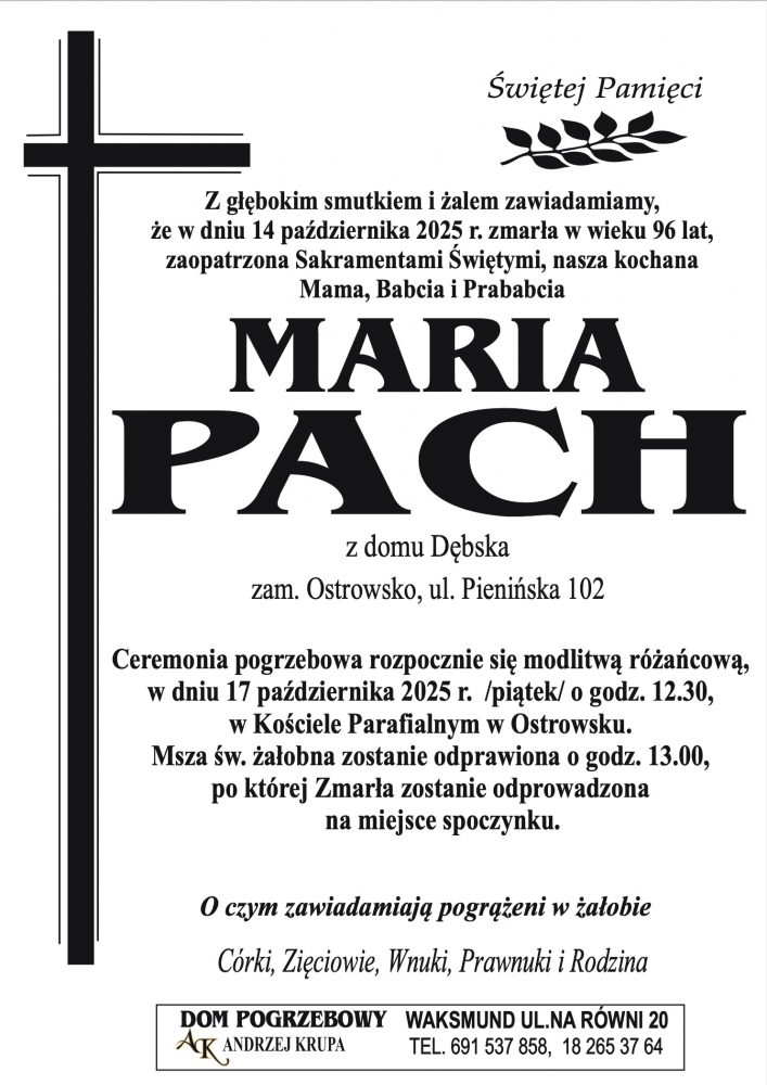 Maria Pach - Nekrologi - podhale24.pl