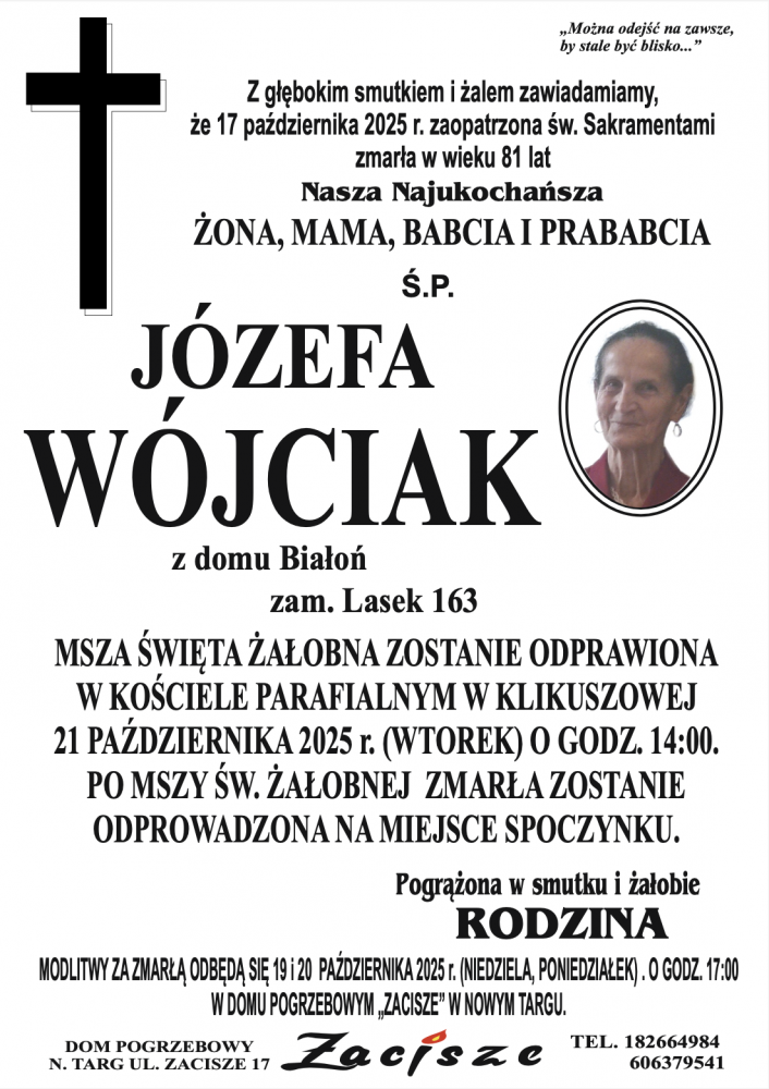 Józefa Wójciak - Nekrologi - podhale24.pl