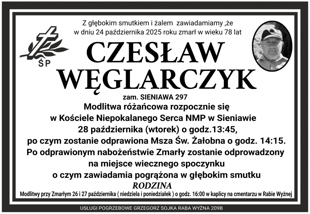 Czesław Węglarczyk - Nekrologi - podhale24.pl