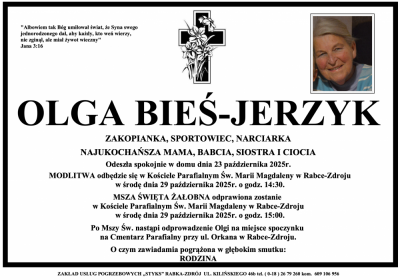 Podhale24.pl zastrzega sobie prawo do nie publikowania wspomnień, w szczególności tych nie związanych z profilem działu nekrologi, zawierających wulgaryzmy, wzywających do zachowań niezgodnych z prawem, obrażających osoby publiczne i prywatne, obrażających inne narodowości, rasy, religie itd, oraz te, bez możliwości telefonicznej lub mailowej weryfikacji ich autora.