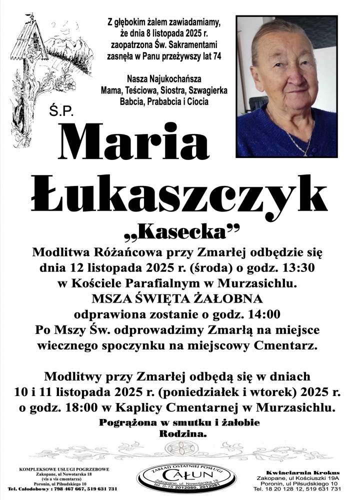 Maria Łukaszczyk - Nekrologi - podhale24.pl