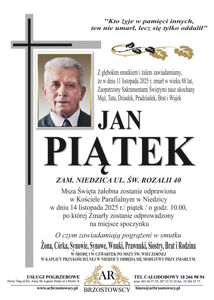 Jan Piątek - Nekrologi - podhale24.pl