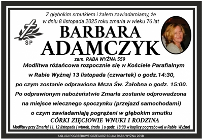 Podhale24.pl zastrzega sobie prawo do nie publikowania wspomnień, w szczególności tych nie związanych z profilem działu nekrologi, zawierających wulgaryzmy, wzywających do zachowań niezgodnych z prawem, obrażających osoby publiczne i prywatne, obrażających inne narodowości, rasy, religie itd, oraz te, bez możliwości telefonicznej lub mailowej weryfikacji ich autora.
