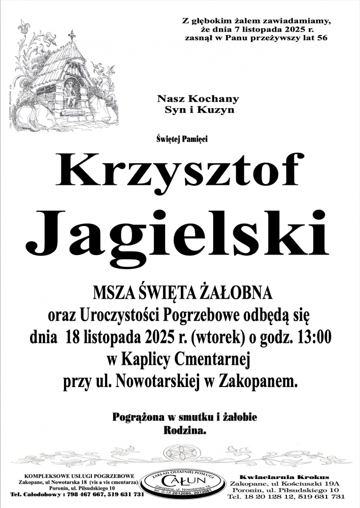 Krzysztof Jagielski - Nekrologi - podhale24.pl