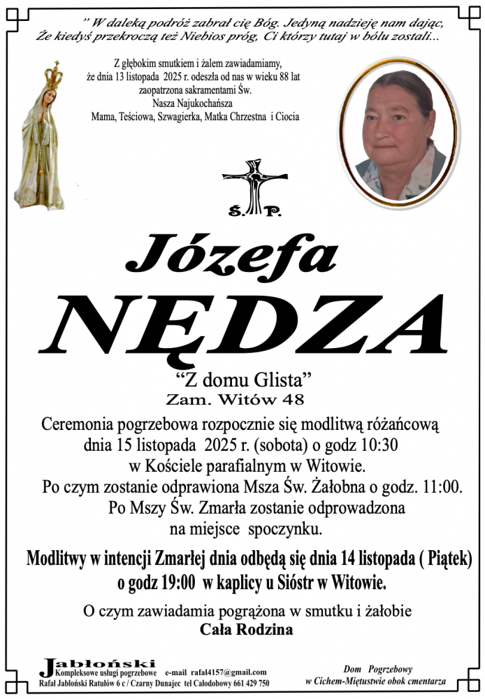 Podhale24.pl zastrzega sobie prawo do nie publikowania wspomnień, w szczególności tych nie związanych z profilem działu nekrologi, zawierających wulgaryzmy, wzywających do zachowań niezgodnych z prawem, obrażających osoby publiczne i prywatne, obrażających inne narodowości, rasy, religie itd, oraz te, bez możliwości telefonicznej lub mailowej weryfikacji ich autora.