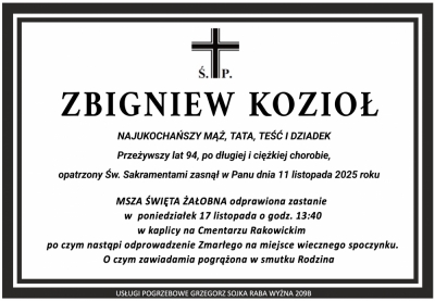Podhale24.pl zastrzega sobie prawo do nie publikowania wspomnień, w szczególności tych nie związanych z profilem działu nekrologi, zawierających wulgaryzmy, wzywających do zachowań niezgodnych z prawem, obrażających osoby publiczne i prywatne, obrażających inne narodowości, rasy, religie itd, oraz te, bez możliwości telefonicznej lub mailowej weryfikacji ich autora.