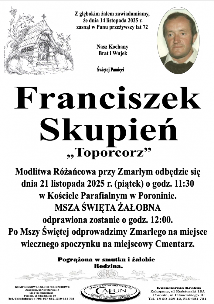 Franciszek Skupień - Nekrologi - podhale24.pl