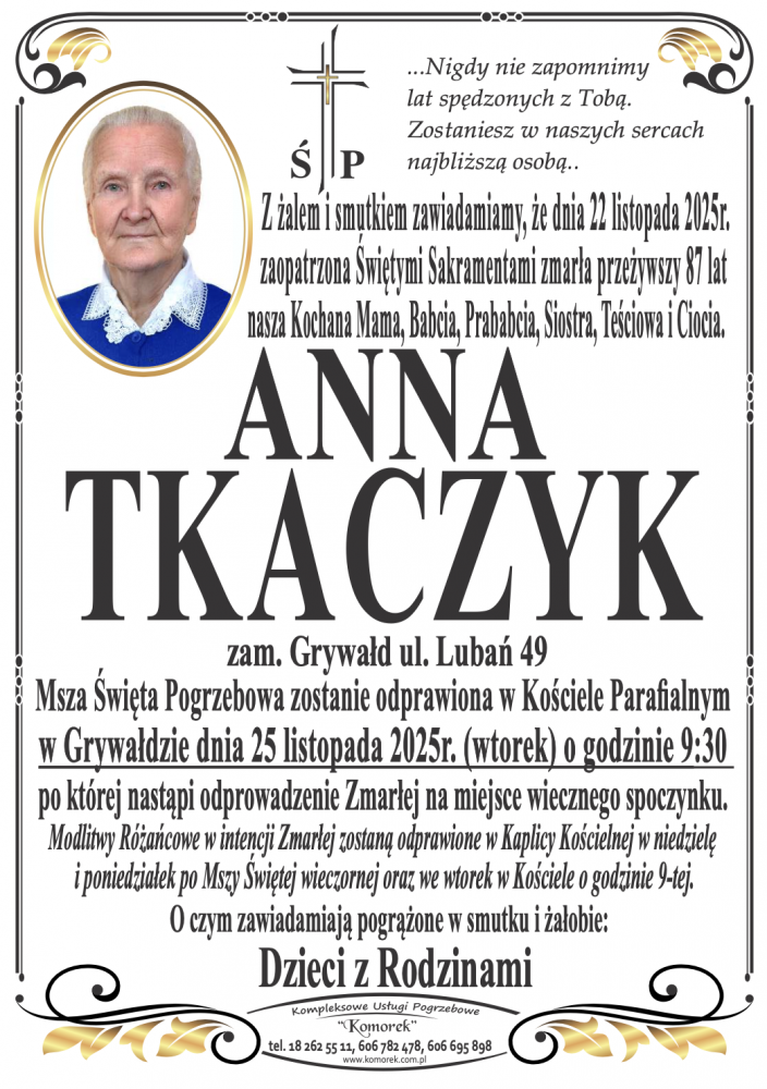 Anna Tkaczyk - Nekrologi - podhale24.pl