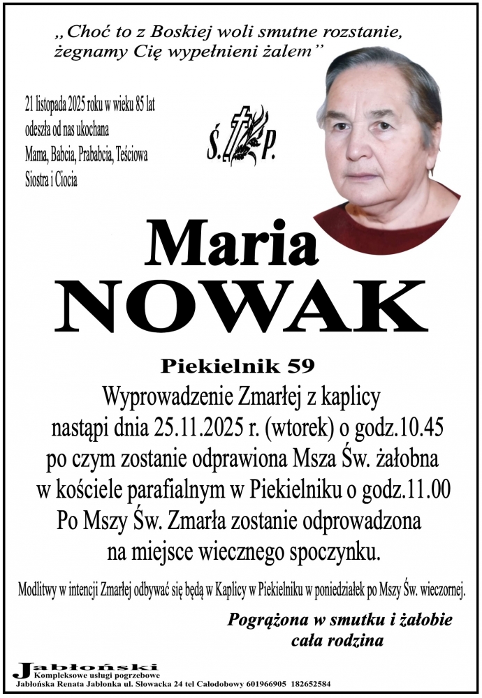 Podhale24.pl zastrzega sobie prawo do nie publikowania wspomnień, w szczególności tych nie związanych z profilem działu nekrologi, zawierających wulgaryzmy, wzywających do zachowań niezgodnych z prawem, obrażających osoby publiczne i prywatne, obrażających inne narodowości, rasy, religie itd, oraz te, bez możliwości telefonicznej lub mailowej weryfikacji ich autora.