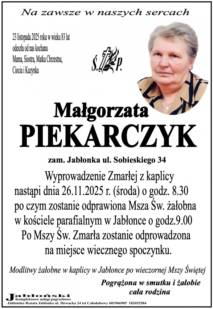 Małgorzata Piekarczyk - Nekrologi - podhale24.pl