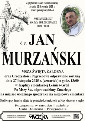 Podhale24.pl zastrzega sobie prawo do nie publikowania wspomnień, w szczególności tych nie związanych z profilem działu nekrologi, zawierających wulgaryzmy, wzywających do zachowań niezgodnych z prawem, obrażających osoby publiczne i prywatne, obrażających inne narodowości, rasy, religie itd, oraz te, bez możliwości telefonicznej lub mailowej weryfikacji ich autora.