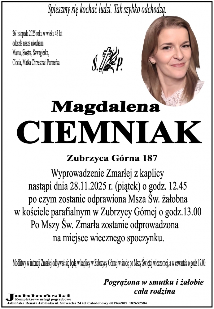 Magdalena Ciemniak - Nekrologi - podhale24.pl