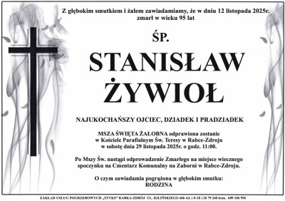 Podhale24.pl zastrzega sobie prawo do nie publikowania wspomnień, w szczególności tych nie związanych z profilem działu nekrologi, zawierających wulgaryzmy, wzywających do zachowań niezgodnych z prawem, obrażających osoby publiczne i prywatne, obrażających inne narodowości, rasy, religie itd, oraz te, bez możliwości telefonicznej lub mailowej weryfikacji ich autora.