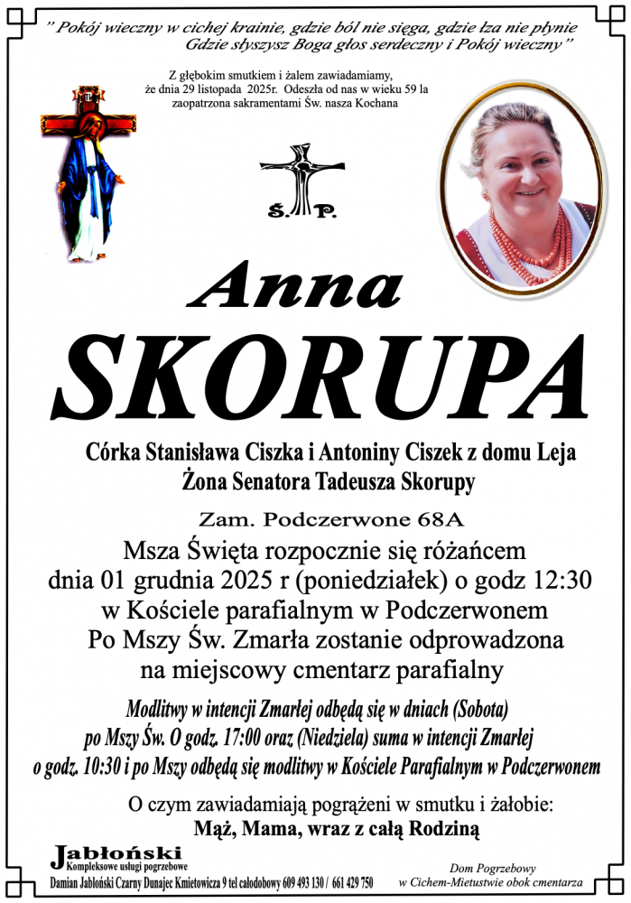 Podhale24.pl zastrzega sobie prawo do nie publikowania wspomnień, w szczególności tych nie związanych z profilem działu nekrologi, zawierających wulgaryzmy, wzywających do zachowań niezgodnych z prawem, obrażających osoby publiczne i prywatne, obrażających inne narodowości, rasy, religie itd, oraz te, bez możliwości telefonicznej lub mailowej weryfikacji ich autora.