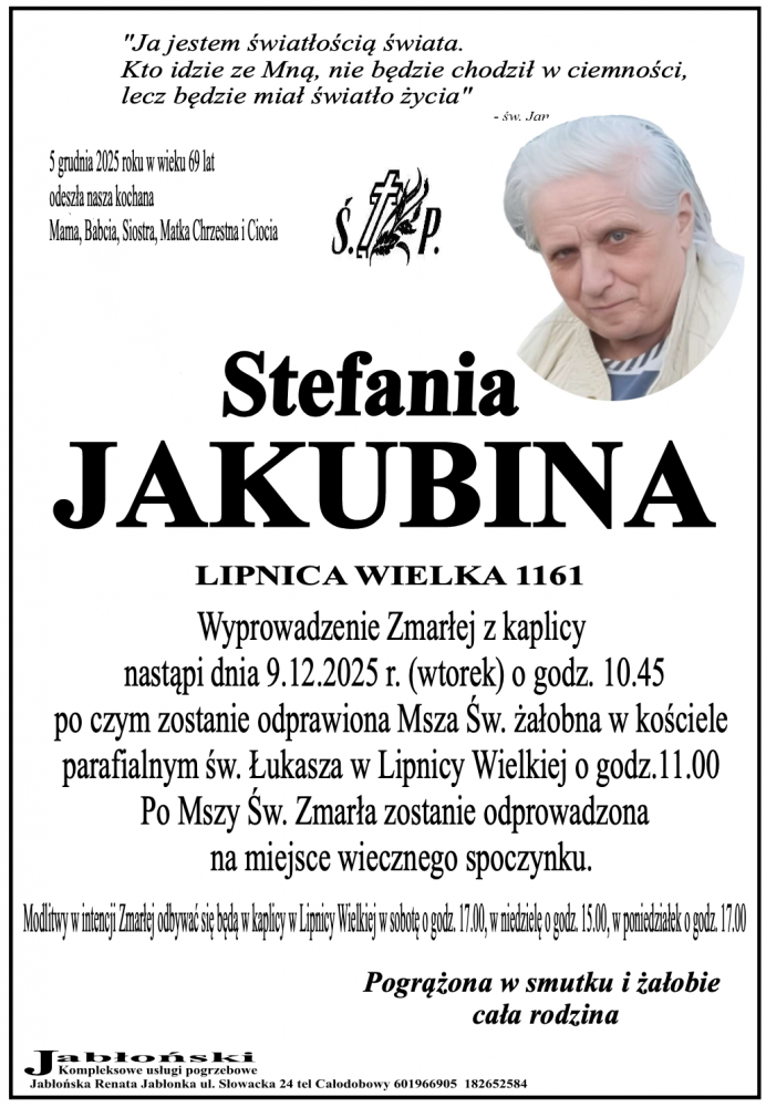 Stefania Jakubina - Nekrologi - podhale24.pl