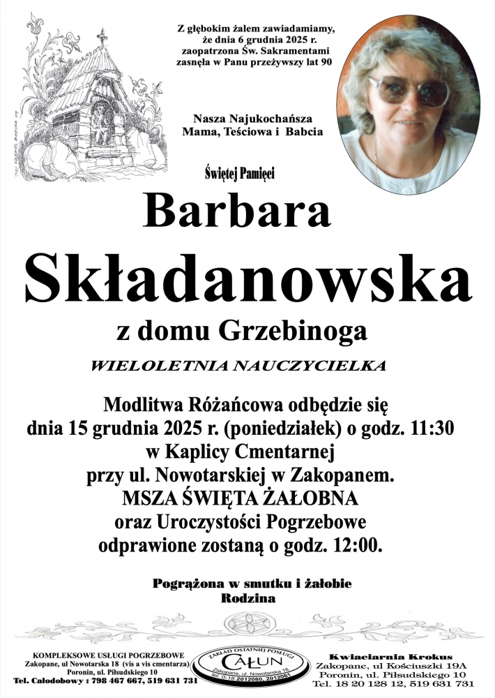Barbara Składanowska - Nekrologi - podhale24.pl