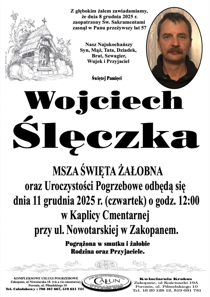 Wojciech Ślęczka - Nekrologi - podhale24.pl