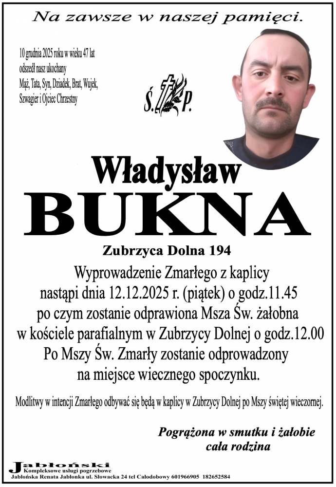 Władysław Bukna - Nekrologi - podhale24.pl