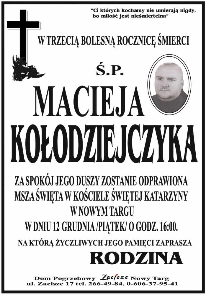 Maciej Kołodziejczyk - Nekrologi - podhale24.pl