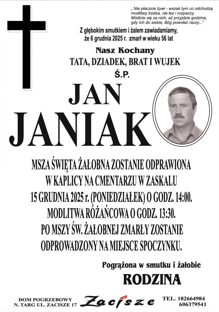 Podhale24.pl zastrzega sobie prawo do nie publikowania wspomnień, w szczególności tych nie związanych z profilem działu nekrologi, zawierających wulgaryzmy, wzywających do zachowań niezgodnych z prawem, obrażających osoby publiczne i prywatne, obrażających inne narodowości, rasy, religie itd, oraz te, bez możliwości telefonicznej lub mailowej weryfikacji ich autora.