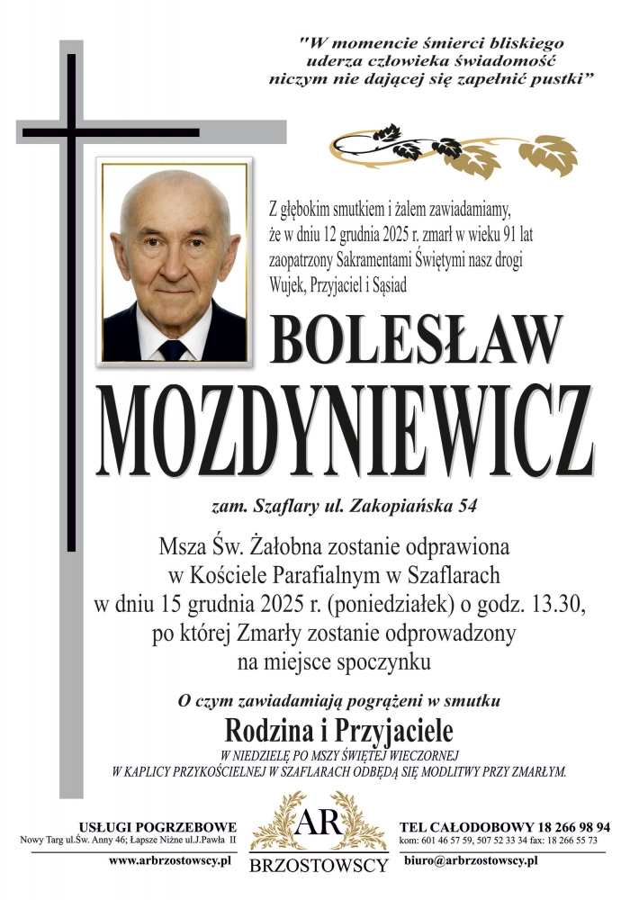 Bolesław Mozdyniewicz - Nekrologi - podhale24.pl