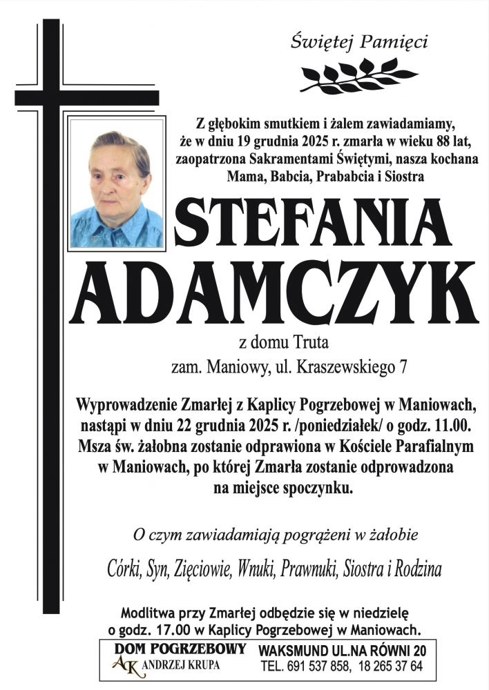 Stefania Adamczyk - Nekrologi - podhale24.pl