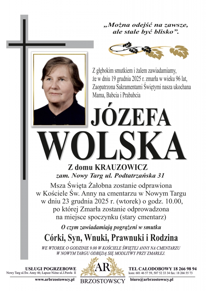 Józefa Wolska - Nekrologi - podhale24.pl