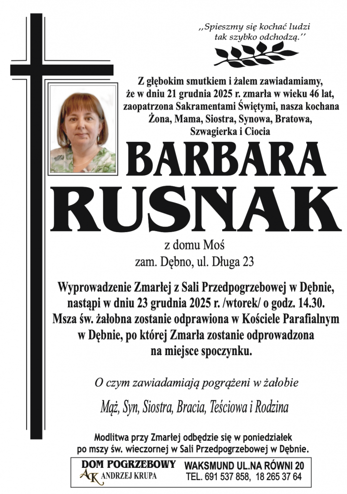 Barbara Rusnak - Nekrologi - podhale24.pl