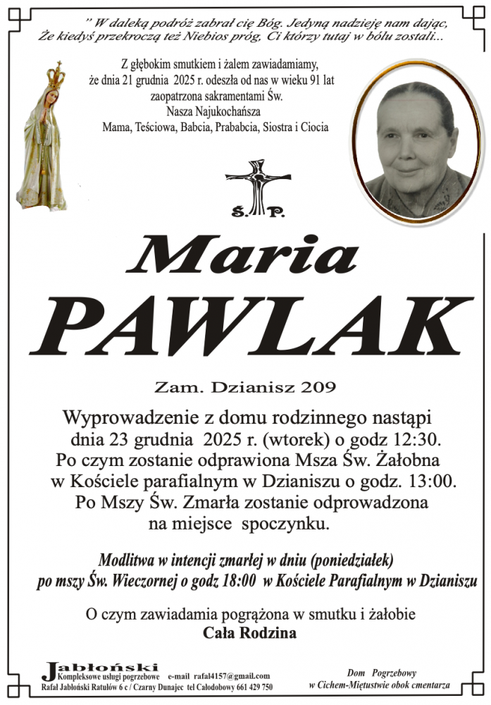 Maria Pawlak - Nekrologi - podhale24.pl