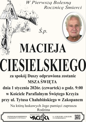 Podhale24.pl zastrzega sobie prawo do nie publikowania wspomnień, w szczególności tych nie związanych z profilem działu nekrologi, zawierających wulgaryzmy, wzywających do zachowań niezgodnych z prawem, obrażających osoby publiczne i prywatne, obrażających inne narodowości, rasy, religie itd, oraz te, bez możliwości telefonicznej lub mailowej weryfikacji ich autora.