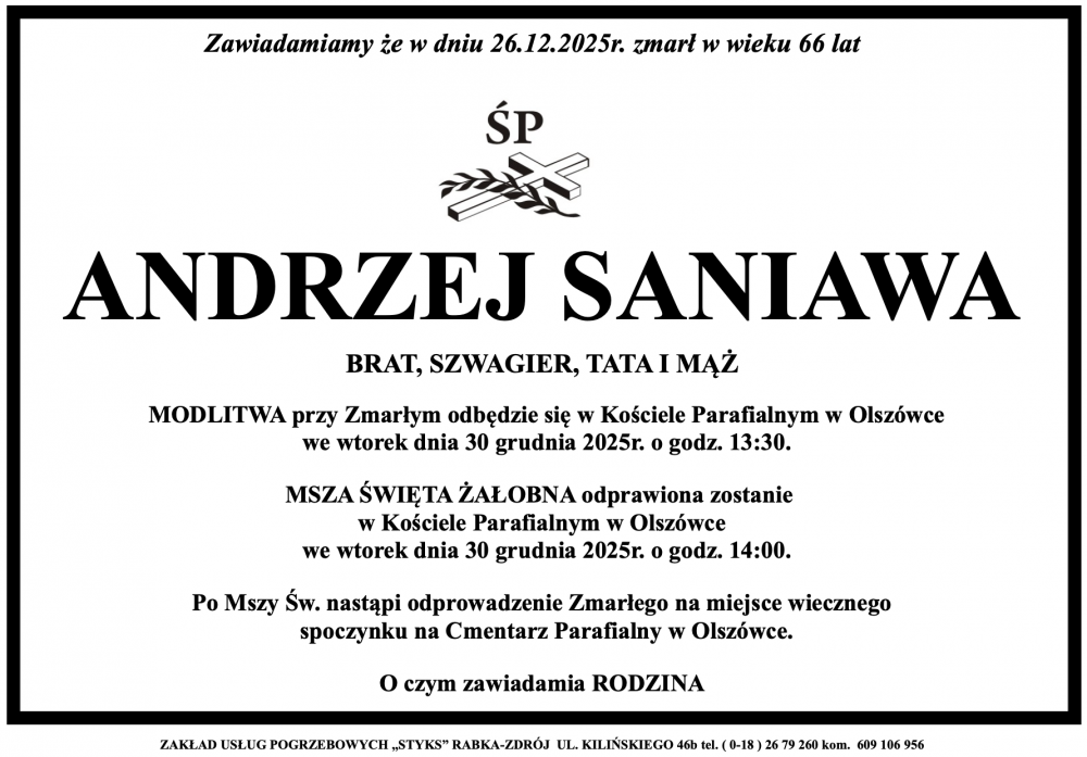 Andrzej Saniawa - Nekrologi - podhale24.pl