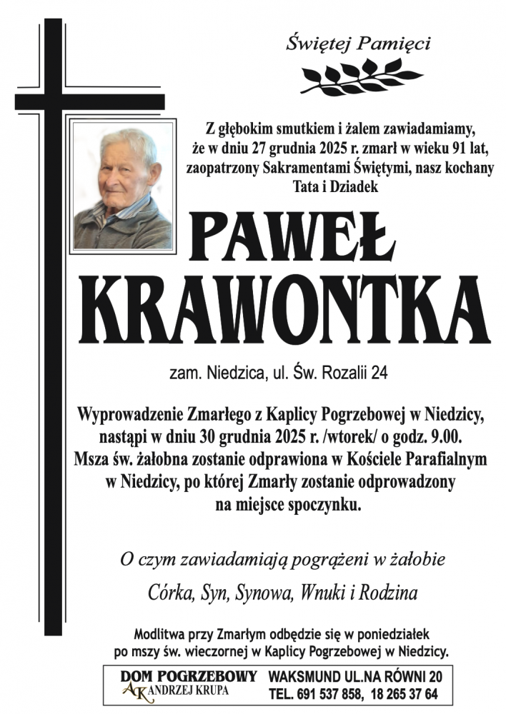 Paweł Krawontka - Nekrologi - podhale24.pl