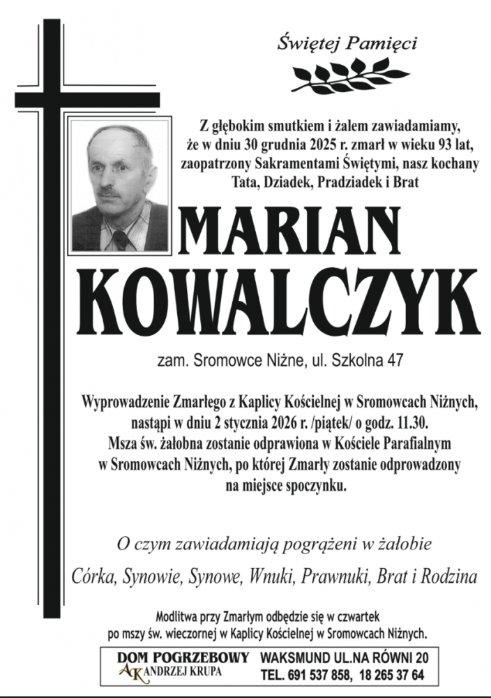 Marian Kowalczyk - Nekrologi - podhale24.pl